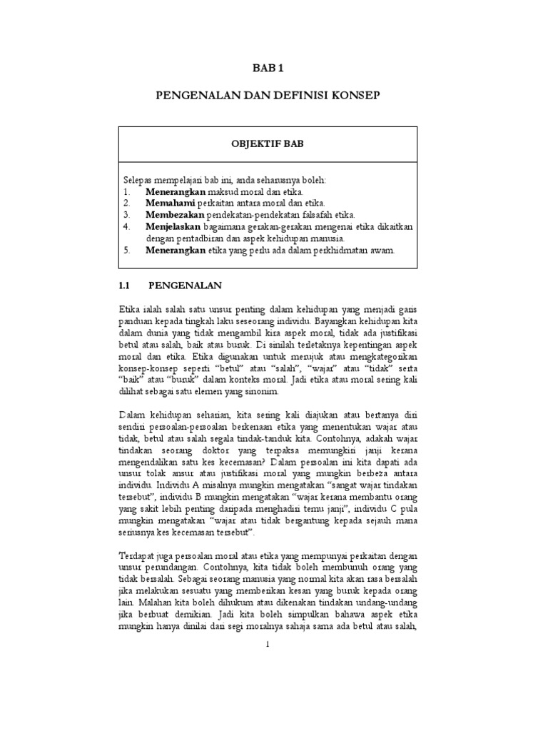 Etika merupakan prinsip moral atau nilai akhlak atau tingkah laku yang menjadi pegangan seseorang individu atau sesuatu kumpulan. Namun begitu kini penjawat awam semakin matang dan berkembang mengikut. 1 Tahun 2018 Siri 3 No.